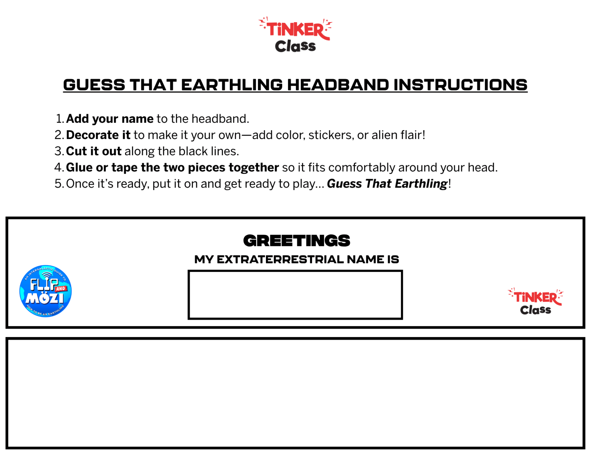 Suit up for the mission! Make your own alien headband to wear while playing Guess That Earthling.