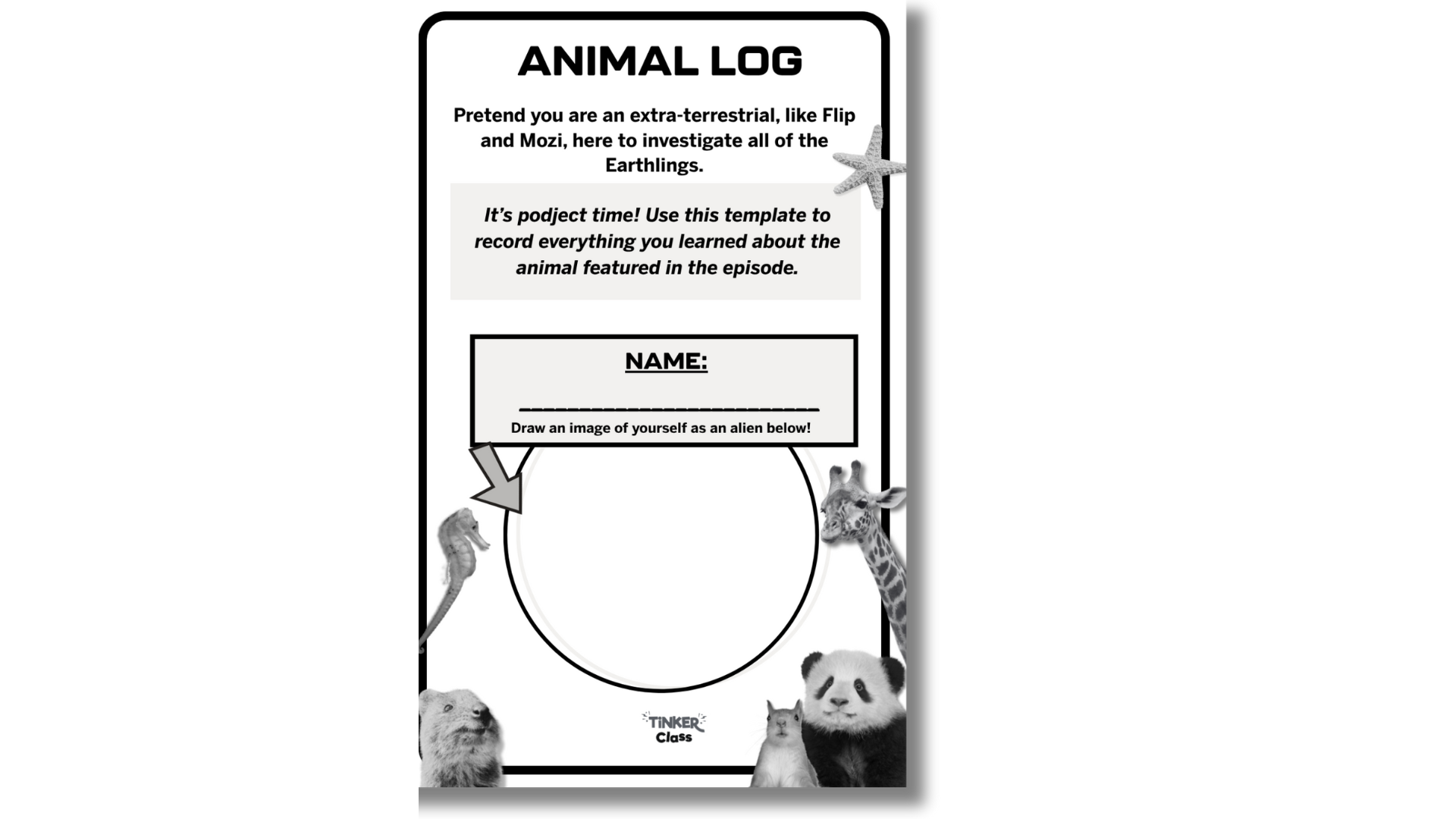 Prefer paper? This printable version of the Flip and Mozi Animal Log slides lets students record their discoveries without a device.